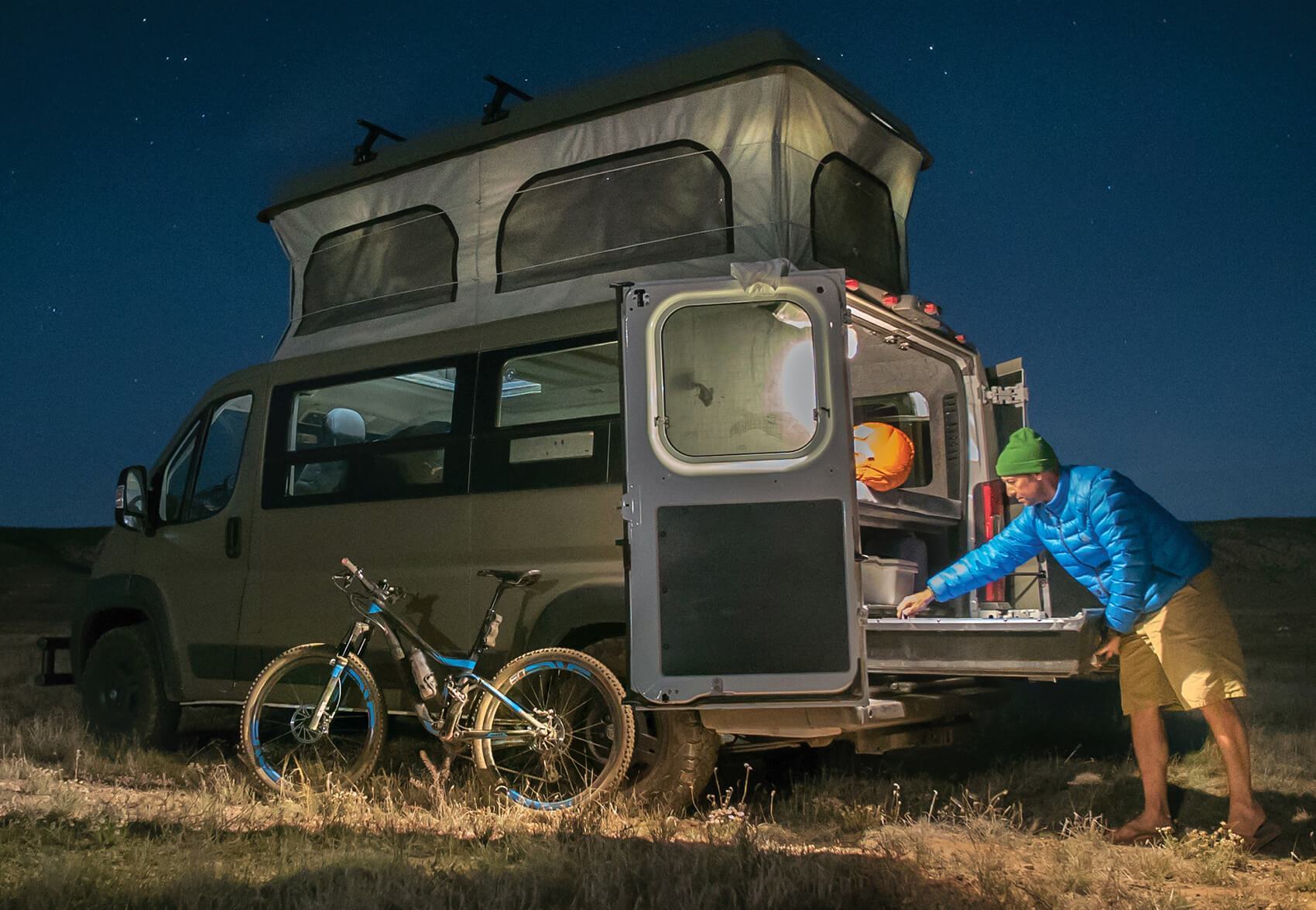 The gear you'll need will be determined by where you're going and how long you'll be there. At a minimum, pack the essentials: a tent, recovery gear, safety equipment, fuel, water, a power source, and cooking/food supplies. If you cannot restock along the way, you must bring enough fuel, water, and food to last the entire trip. With limited storage space, staying organized is a top priority. We like to make a checklist and bring only what is necessary. To save space, mount your bikes, kayaks, and other items using rack accessories and carriers.